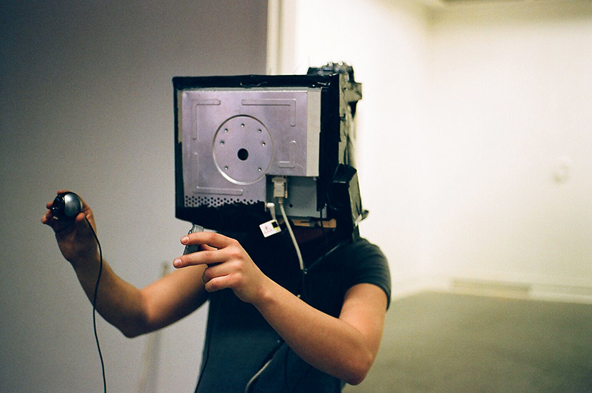 The videohelmet gives the oppertunity to see with your hands. Each camera is linked via a screen to one eye.